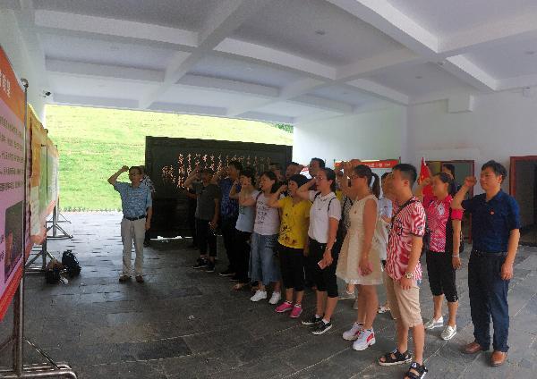 在沙洲广场上,全体党员面对着鲜艳的党旗,庄重的举起右手,重温了入党誓词,让所有人的灵魂再一次得到了洗礼,更加坚定了理想信念。随后,大家参观了沙洲红色文化基地,缅怀革命先烈,在徐解秀老人故居,“半条被子”的感人故事,在场的党员无不为之动容。