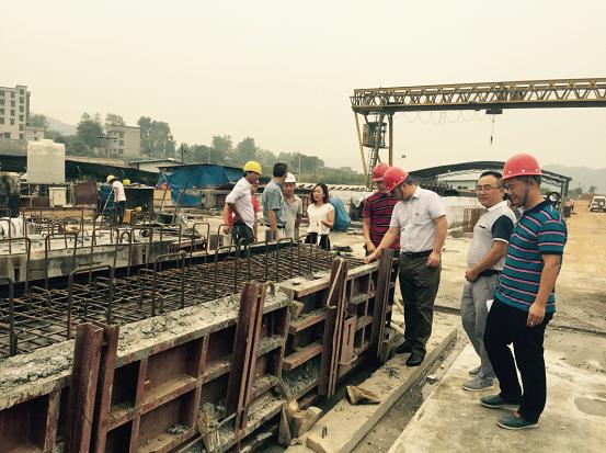 苏仙区审计局党组书记、局长黄平山同志(右三)带队深入G107良田绕镇公路项目建设现场进行跟踪审计监督。