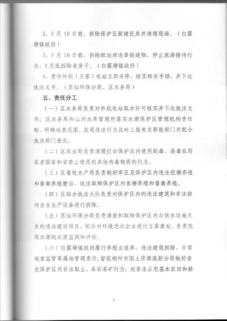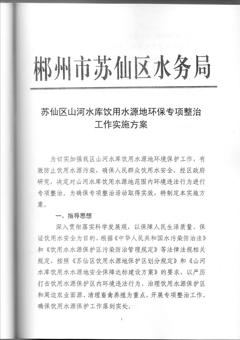 苏仙区山河水库饮用水源地环保专项整治工作实施方案