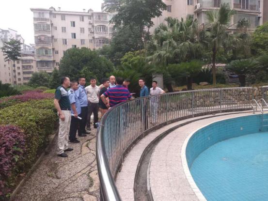 6月21日上午,苏仙岭街道办事处联合区文广体新局、卫计局、食品药品监督管理局对位于东方新城北苑住宅区院内室外游泳场所进行全面安全执法检查。通过实地查看、调阅资料、询问负责人,进一步了解游泳池安全管理、人员配置、器材配备、水质监测、应急预案制定情况。针对游泳场所未设置消毒池,循环排水口防护不符合安全要求,未配备专用急救药箱、深水池无水深标识等存在的安全隐患情况现场约谈泳池负责人,要求以对人民高度负责的态度,时刻紧绷安全生产这根弦,加强安全管理,落实隐患整改。